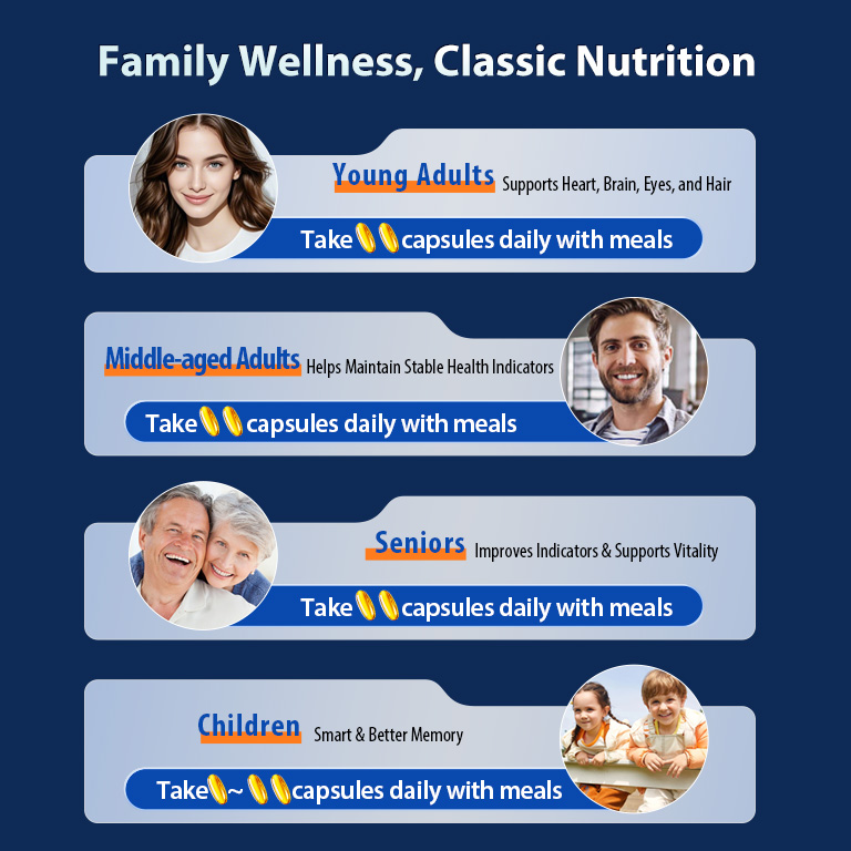 Your Health Goals: Identify your reasons for taking fish oil (e.g., heart health, joint pain) to determine the optimal EPA and DHA content. Our organic health products are designed for people in different age groups. Before you choose the right supplements for your health concerns, you can check the product label to know what specific nutrients you need.