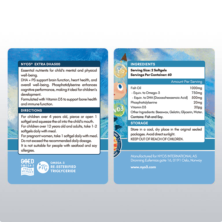 NYO3® MUNCH CLASSIC 1892 EXTRA DHA 500 Fish Oil is one of the high-potency fish oil supplements that contains 1000mg of high-quality fish oil per serving, providing a potent source of essential omega-3 fatty acids, including EPA and DHA.