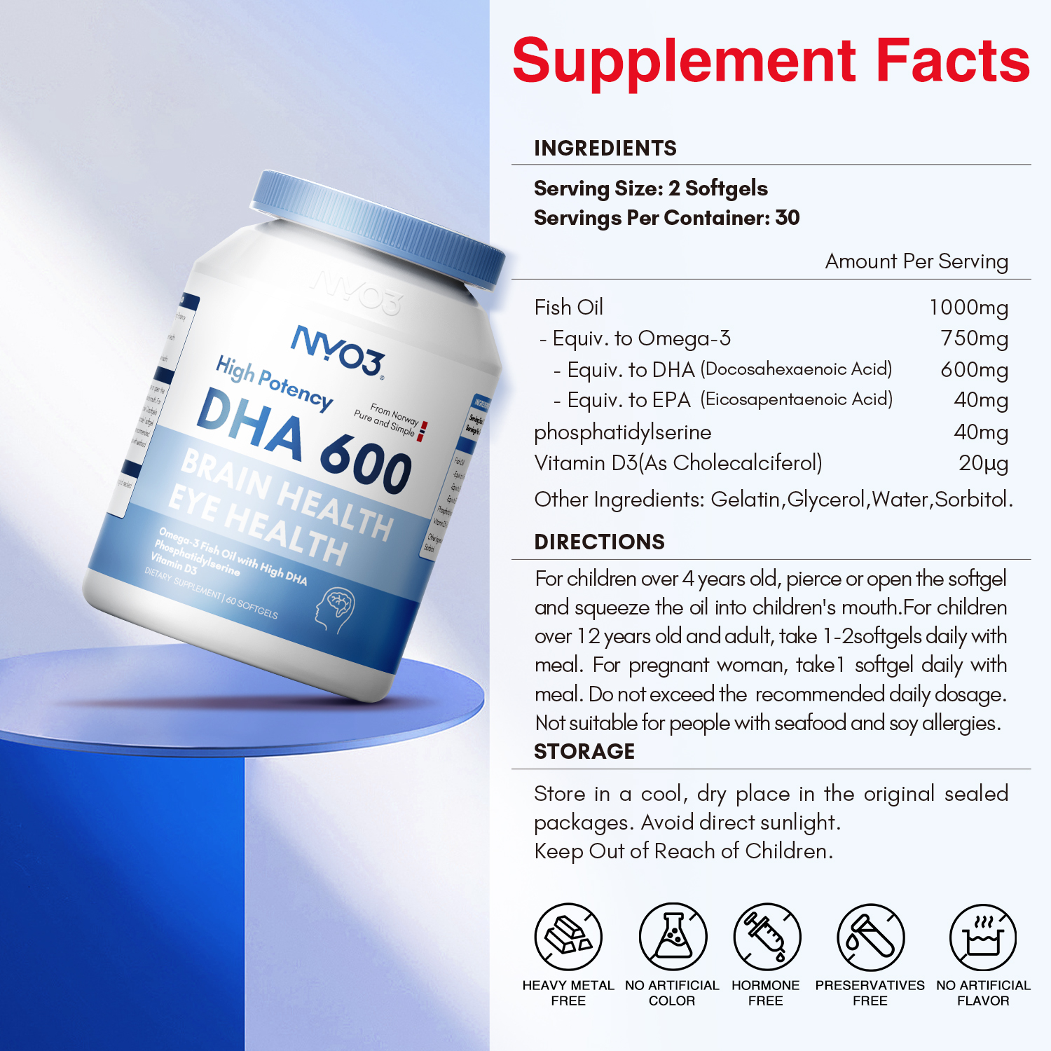 NYO3® High Potency DHA 600 Fish Oil Softgels 1000mg(Buy More, Save More)